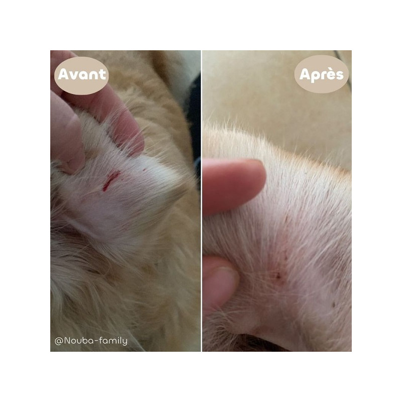 Dès les 8 semaines de votre animal, ce gel est le meilleur pour hydrater, régénérer, protéger et apaiser la peau suite à de légères irritations ou des microlésions provoquées par le grattage. Il apaise la peau et les coussinets de vos compagnons. Créé à partir d’actifs d’origine naturelle, vous pourrez l’utiliser pour tous les bobos du quotidien. Le dermo’gel devient le gardien imperturbable des blessures de votre animal grâce aux propriétés cicatrisantes, hydratantes et protectrices.