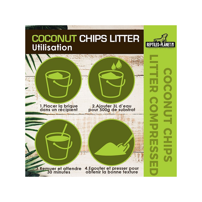 Substrat pour tous types de terrariums, en coque de noix de coco compressée.